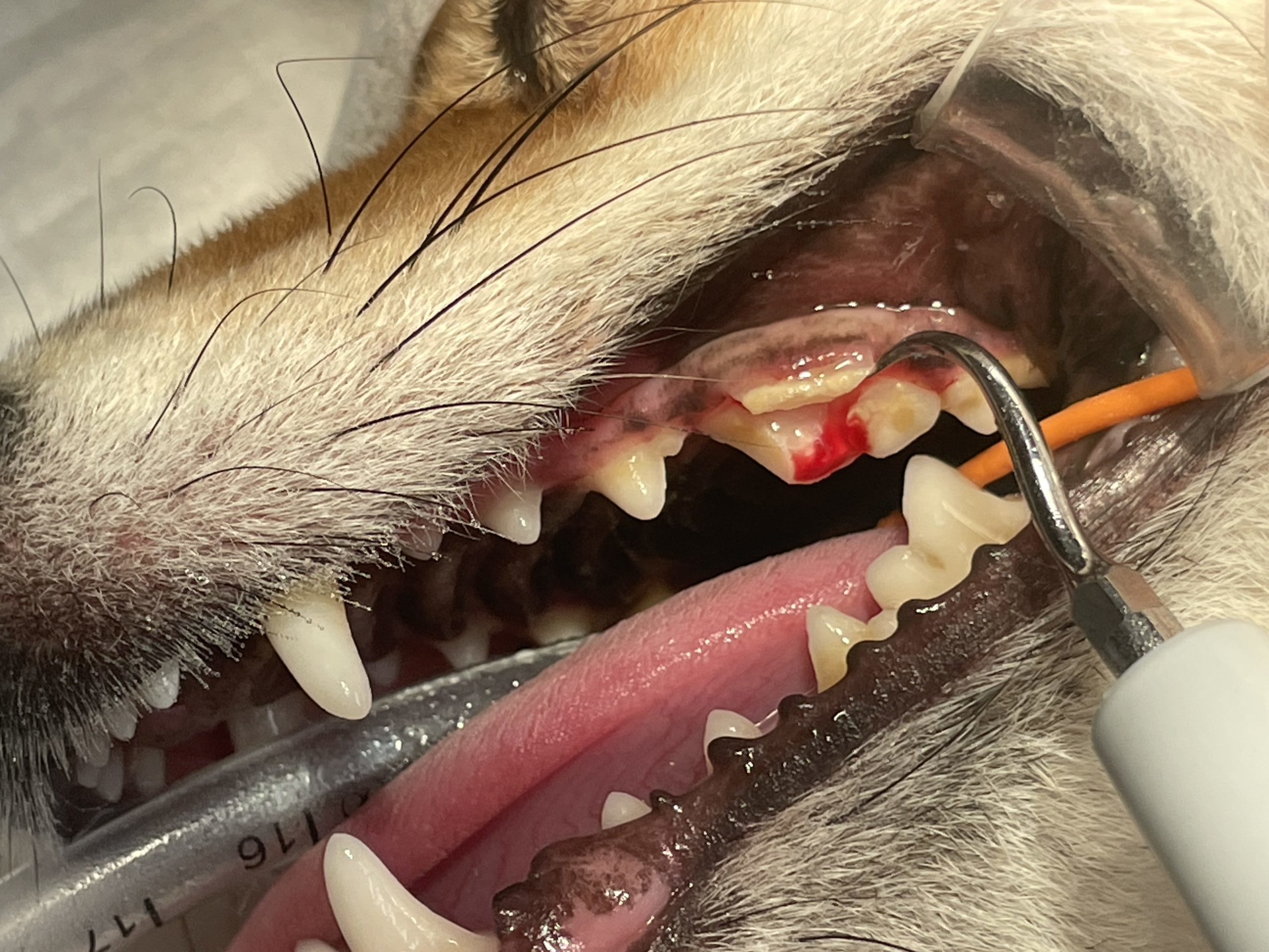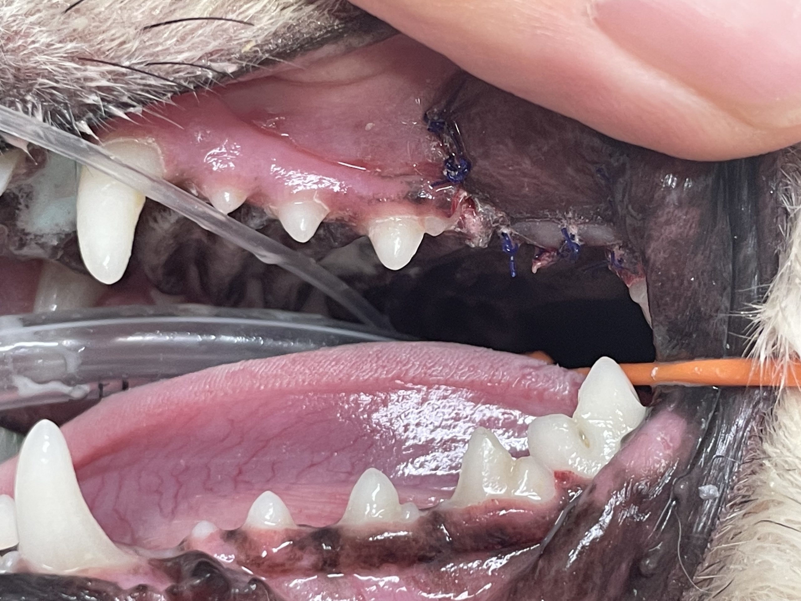 △綺麗に歯石を除去し、折れていた歯を抜歯し、縫合しています。